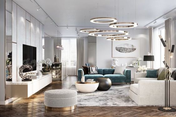 - Lighting: A carefully planned lighting scheme allows you to create a desired mood in a space, enhancing the experience within the interiors. So, you need a layered lighting plan with general lighting for illumination, mood lighting and focus lights for certain areas or artworks and accessories. Chandeliers are the go-to lights to introduce awe-inspiring beauty and to hold the entire space together. There are a great many styles of lights available on the market that help you choose the one that is right for your space.
