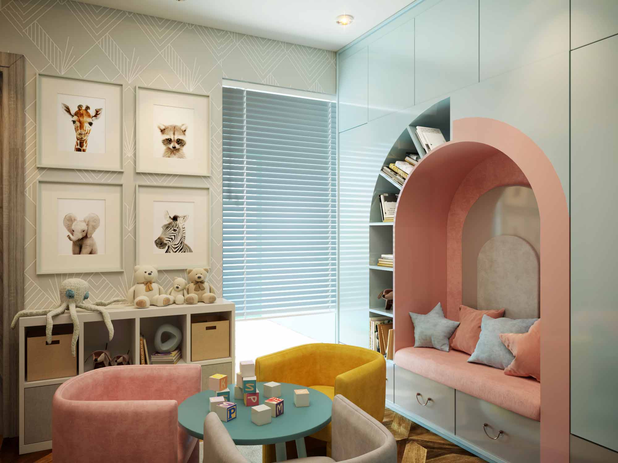 Pastels exude a delightful and elegant vibe, and offer neutral backdrops for a play of various design elements that children’s rooms demand. They also have a calming effect on the minds of people, so be rest assured that your kids will be relaxed, even if you pack in a lot vis-à-vis the décor elements.